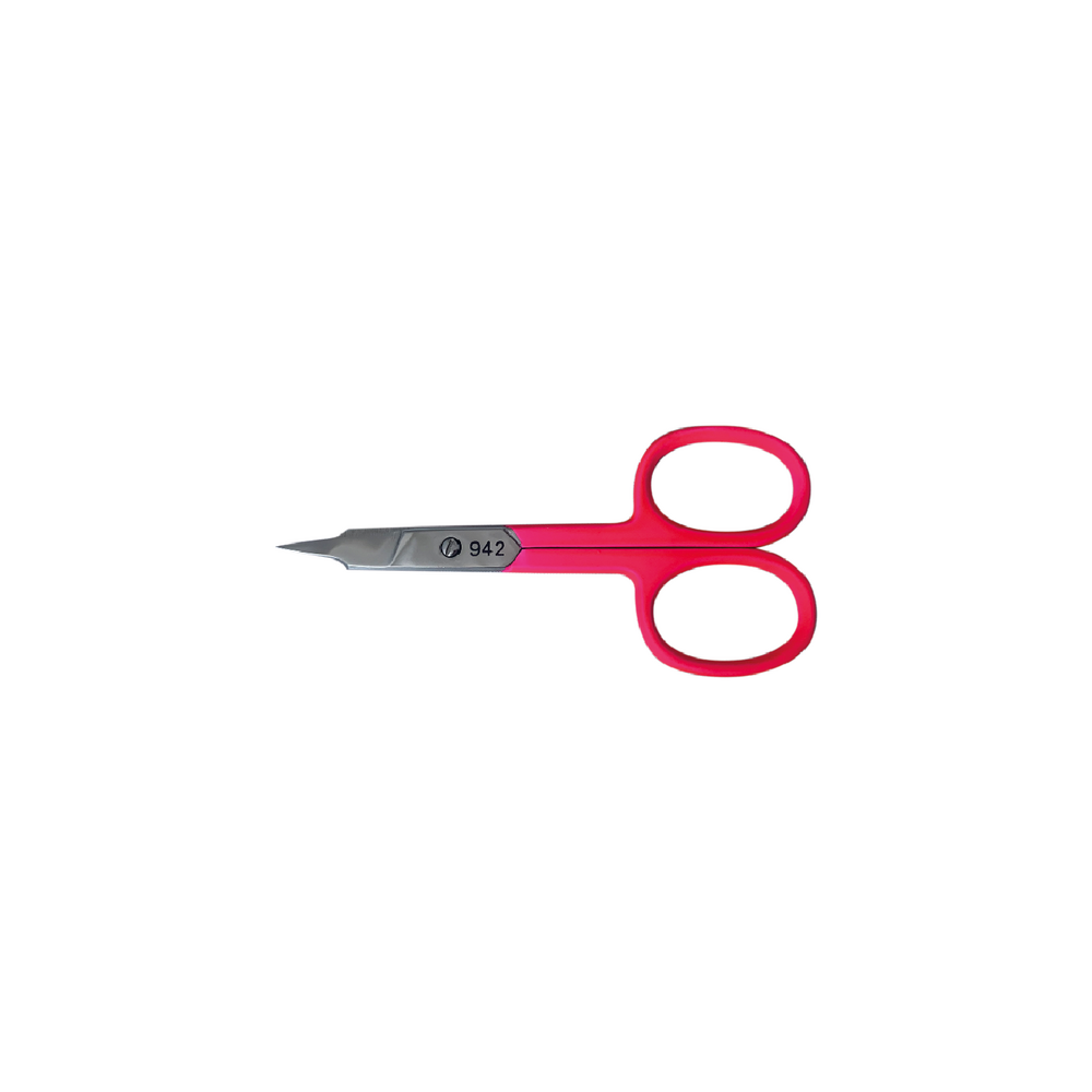 Forbici colore fucsia in Soft Touch per unghie e pellicine, lame curve, 10cm, acciaio inossidabile.