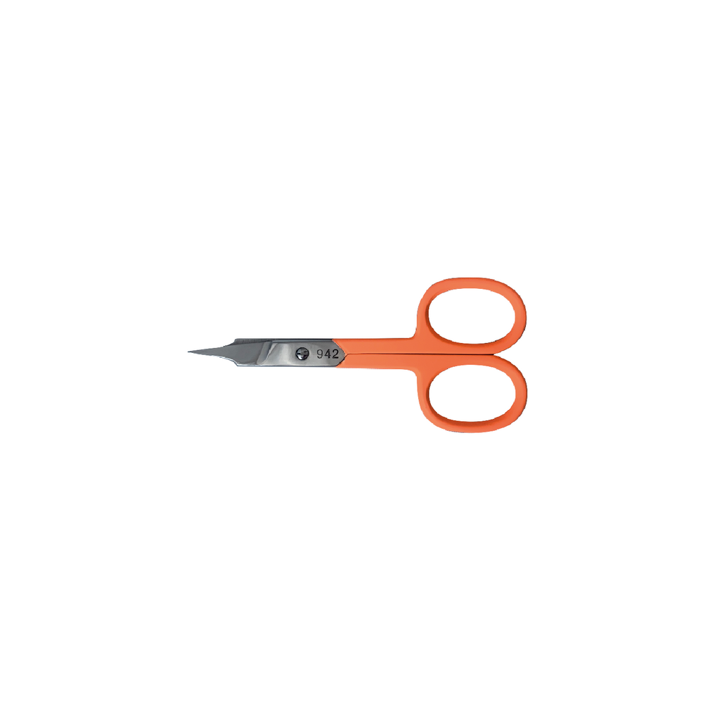 Forbici colore arancio in Soft Touch per unghie e pellicine, lame curve, 10cm, acciaio inossidabile.