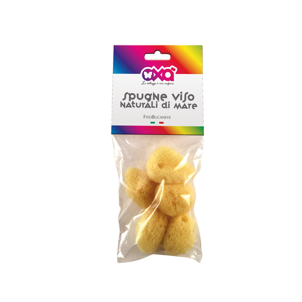 Set di 5 piccole Spugne naturali di Mare, adatte al lavaggio di viso e occhi.